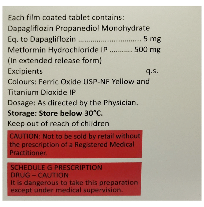 Salt Composition Dapagliflozin (5mg) + Metformin (500mg)