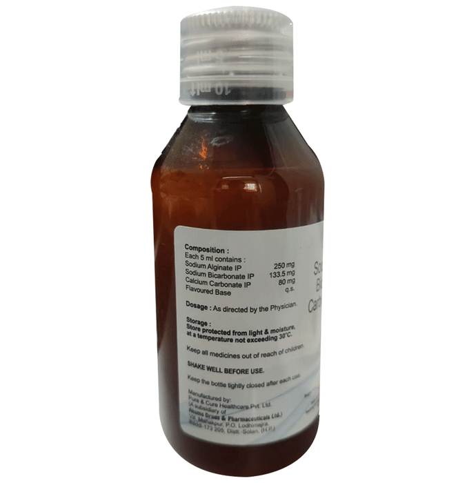 Salt Composition Calcium Carbonate (80mg/5ml) + Sodium Alginate (250mg/5ml) + Sodium Bicarbonate (133.5mg/5ml)