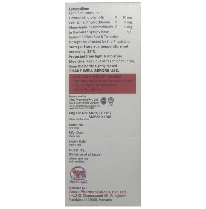 Salt Composition Cetirizine (5mg/5ml) + Dextromethorphan Hydrobromide (10mg/5ml) + Phenylephrine (5mg/5ml)