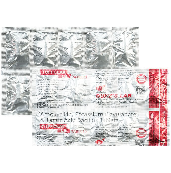 Salt Composition Amoxycillin (500mg) + Potassium Clavulanate (125mg) + Lactobacillus Acidophilus (60Million spores)