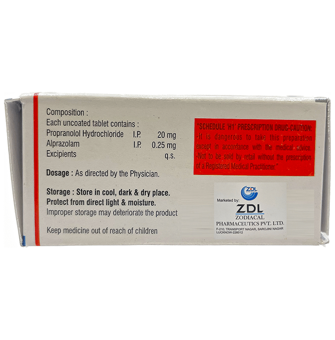 Salt Composition Alprazolam (0.25mg) + Propranolol (20mg)