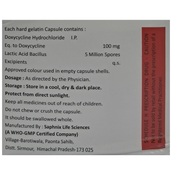 Salt Composition Doxycycline (100mg) + Lactobacillus (5Million spores)