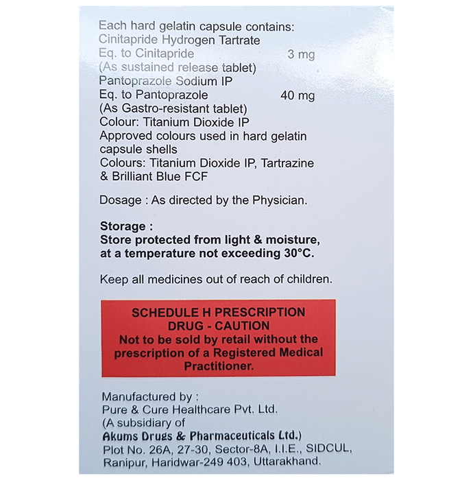 Salt Composition Cinitapride (3mg) + Pantoprazole (40mg)