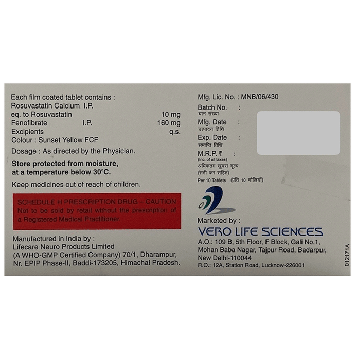 Salt Composition Fenofibrate (160mg) + Rosuvastatin (10mg)