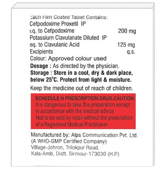 Salt Composition Cefpodoxime Proxetil (200mg) + Clavulanic Acid (125mg)