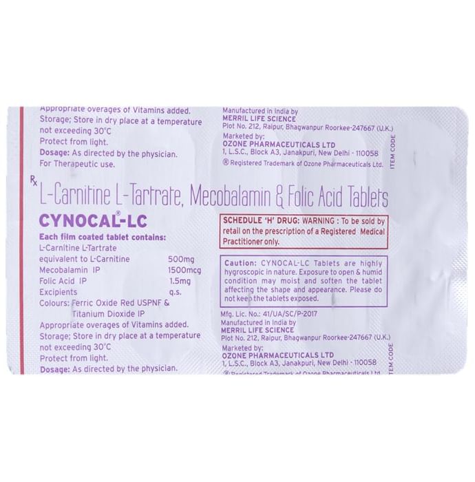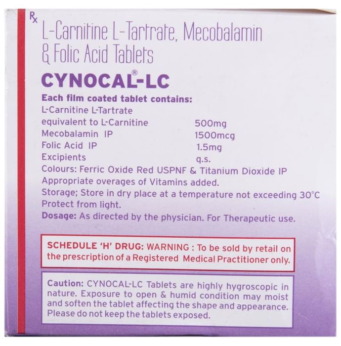 Salt Composition Levo-carnitine (500mg) + Methylcobalamin (1500mcg) + Folic Acid (1.5mg)
