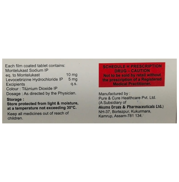 Salt Composition Levocetirizine (5mg) + Montelukast (10mg)
