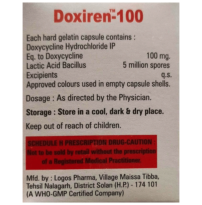 Salt Composition Doxycycline (100mg) + Lactobacillus (5Million spores)