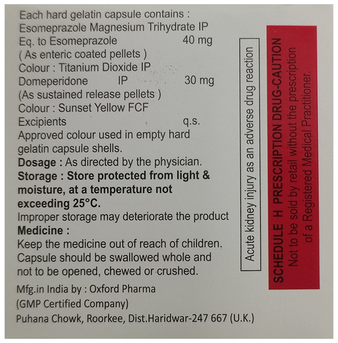 Salt Composition Domperidone (30mg) + Esomeprazole (40mg)