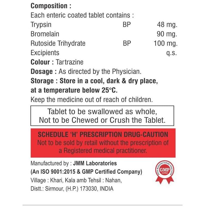 Salt Composition Bromelain (90mg) + Trypsin (48mg) + Rutoside (100mg)