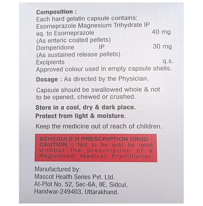 Salt Composition Domperidone (30mg) + Esomeprazole (40mg)