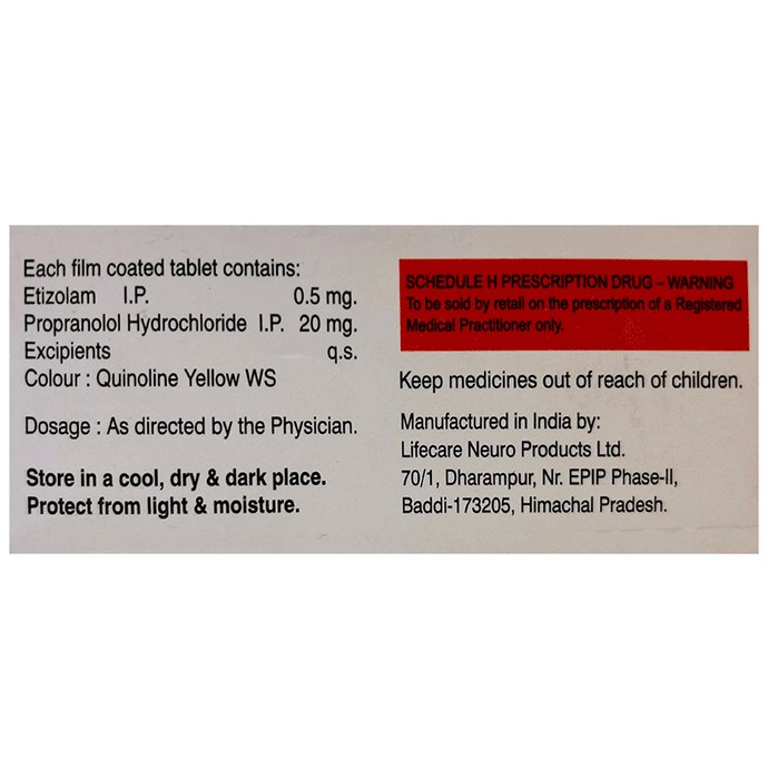 Salt Composition Etizolam (0.5mg) + Propranolol (20mg)