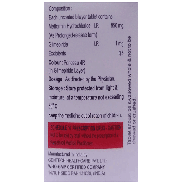 Salt Composition Glimepiride (1mg) + Metformin (850mg)