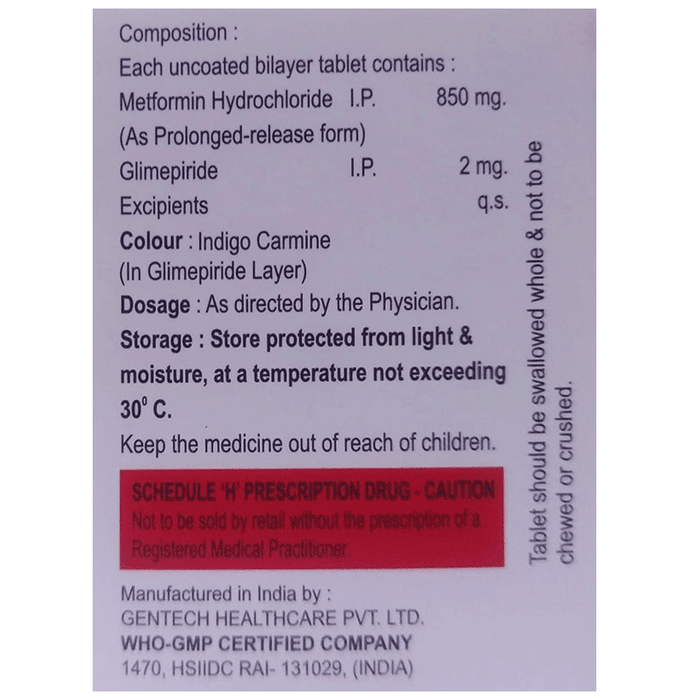 Salt Composition Glimepiride (2mg) + Metformin (850mg)