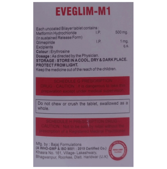 Salt Composition Glimepiride (1mg) + Metformin (500mg)
