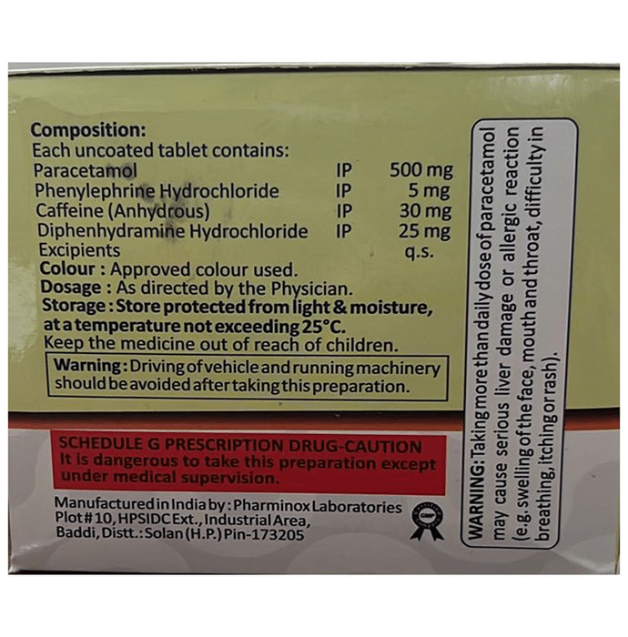 Salt Composition Caffeine (30mg) + Diphenhydramine (25mg) + Paracetamol (500mg) + Phenylephrine (5mg)