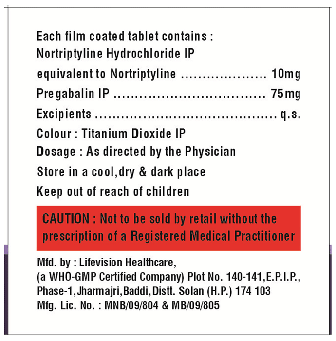 Salt Composition Pregabalin (75mg) + Nortriptyline (10mg)