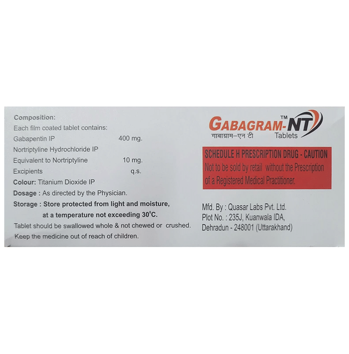 Salt Composition Gabapentin (400mg) + Nortriptyline (10mg)