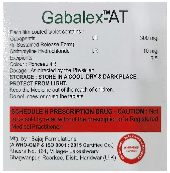 Salt Composition Gabapentin (300mg) + Amitriptyline (10mg)
