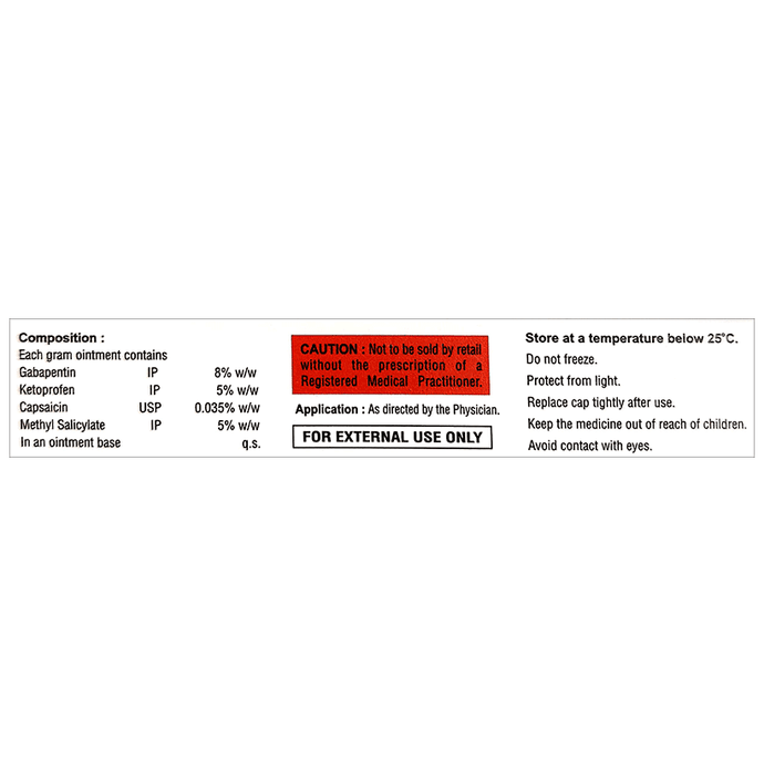 Salt Composition Gabapentin (8% w/w) + Capsaicin (0.035% w/w) + Ketoprofen (5% w/w) + Methyl Salicylate (5% w/w)