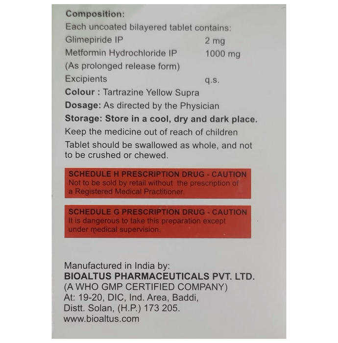Salt Composition Glimepiride (2mg) + Metformin (1000mg)