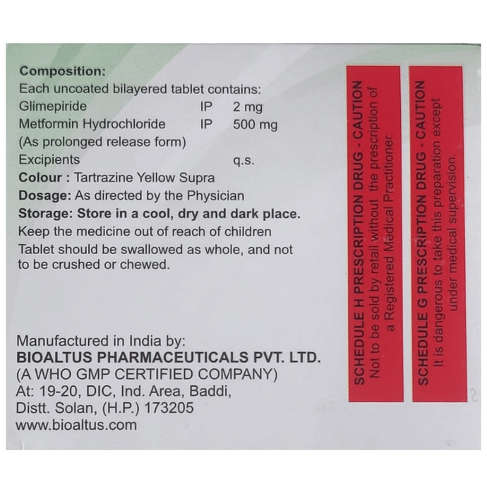 Salt Composition Glimepiride (2mg) + Metformin (500mg)