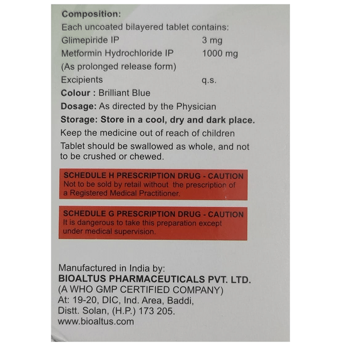 Salt Composition Glimepiride (3mg) + Metformin (1000mg)