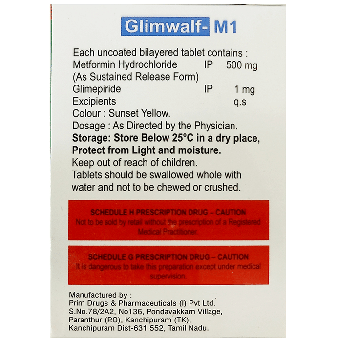 Salt Composition Glimepiride (1mg) + Metformin (500mg)