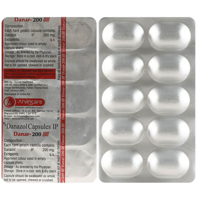 Gynodan 200mg Capsule is used to treat various menstrual problems including painful or irregular periods premenstrual tension (PMT) benign fibrocystic breast disease (painful breast disease) and a condition called endometriosis.Gynodan 200mg Capsule can be taken with or without food but take it at the same time to get the most benefit. It should be taken as your doctor's advice. The dose and how often you take it depends on what you are taking it for. Your doctor will decide how much you need to improve your symptoms. Swallow the tablets whole with a glass of water. You should take this medicine for as long as it is prescribed for you.The most common side effects of this medicine include weight gain hair loss voice changes acne and irregular menstrual cycle. If these bother you or appear serious let your doctor know. There may be ways of reducing or preventing them. You should stop taking it if you become pregnant.Before taking this medicine tell your doctor if you are pregnant or breastfeeding if you have ever had any problems with your blood circulation or have diabetes or migraine. Your doctor should also know about all other medicines you are taking as many of these may make this medicine less effective or change the way it works. Your doctor may perform blood tests regularly to check blood cells liver and thyroid are working properly.