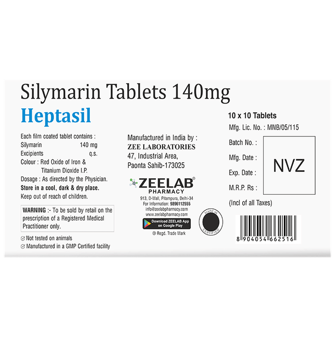 Q. What is Heptasil Tablet? What is it used for?::: Heptasil Tablet belongs to a class of medicines known as hepatoprotective medicines which means that they protect the liver. It is used to treat chronic (long-standing) liver diseases. It is also used to treat severe cases of liver disease known as cirrhosis of the liver. Heptasil Tablet accelerates alcohol clearance from the blood and therefore also helps in the treatment of fatty liver due to alcoholism.| Q. How does Heptasil Tablet work for the liver?::: Heptasil Tablet is obtained from milk thistle seed (Silybum marianum). Heptasil Tablet works by increasing the process of alcohol elimination from blood and tissues. This provides faster recovery from alcohol intoxication and as a result protects the liver from damage against harmful chemicals known as free radicals. Thereby it helps to improve overall health of the liver.| Q. How to use Heptasil Tablet?::: Heptasil Tablet should be taken with food. Take it in the dose and duration advised by the doctor. The dose will depend on the condition you are being treated for and your total body weight. It is advised to follow your doctor’s instructions carefully to get the maximum benefit of Heptasil Tablet.| Q. What are the side effects of Heptasil Tablet?::: The most common side effects are nausea upset stomach loss of appetite stomach or back pain hair loss dizziness itching and diarrhea. However these effects are not observed in every patient. If you are worried about them or they do not go away inform your doctor. If you have problems with diarrhea your doctor may reduce the dose or stop the treatment. Drink enough water or fluids to stay hydrated in case of severe diarrhea.| Q. Can Heptasil Tablet be used in pregnancy and lactation?::: Heptasil Tablet may not be safe to be used in pregnant and breastfeeding women. Please consult your doctor before taking Heptasil Tablet if you are planning to conceive pregnant or breastfeeding to prevent harmful effects on the baby.