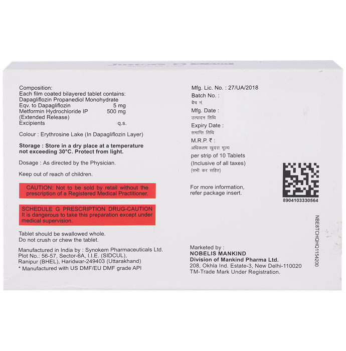 Salt Composition Dapagliflozin (5mg) + Metformin (500mg)