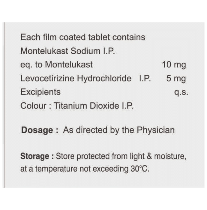 Salt Composition Levocetirizine (5mg) + Montelukast (10mg)