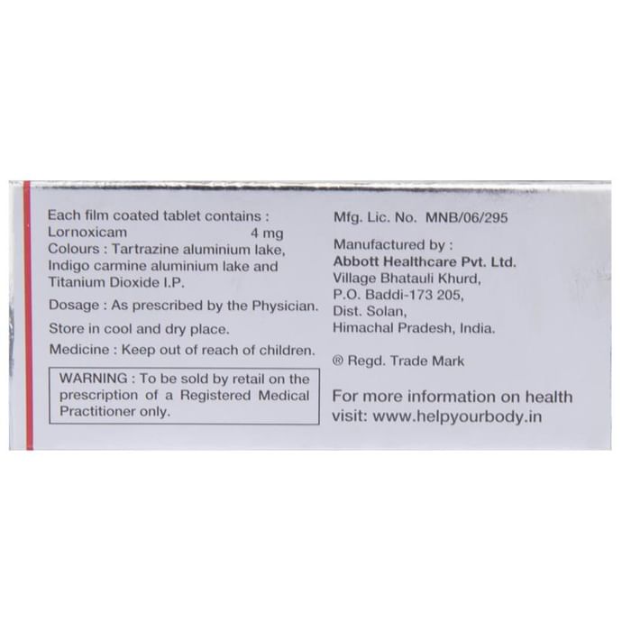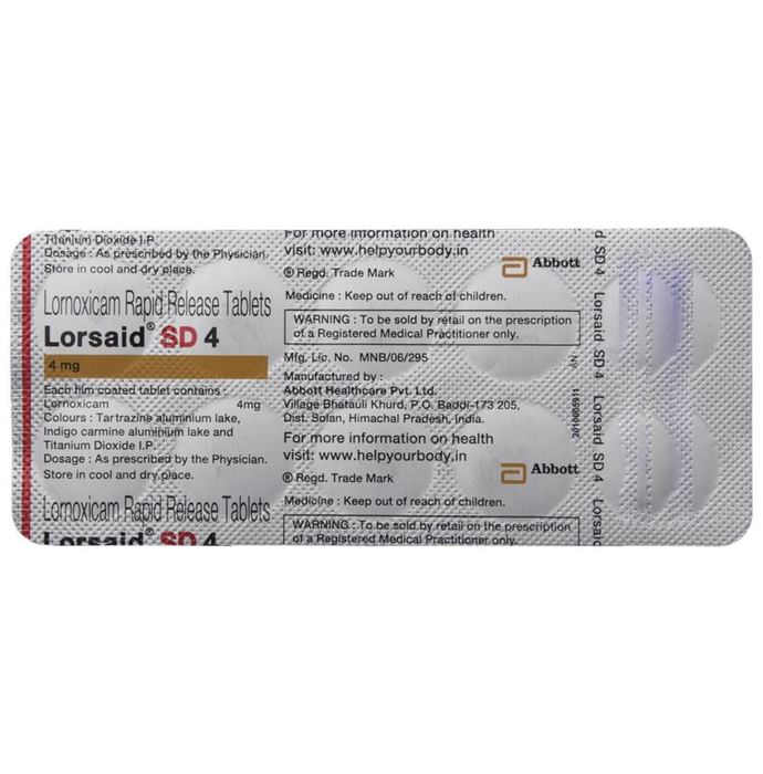 In Pain relief Lorsaid SD 4 Tablet helps to relieve pain inflammation and swelling in conditions that affect joints and muscles. It works by blocking chemical messengers in the brain that tell us we have pain. It can help relieve pain in conditions like rheumatoid arthritis and osteoarthritis.\u003cbr>Take it as it is prescribed to get the most benefit. Do not take more or for longer than needed as that can be dangerous. In general you should take the lowest dose that works for the shortest possible time. This will help you to go about your daily activities more easily and have a better more active quality of life.