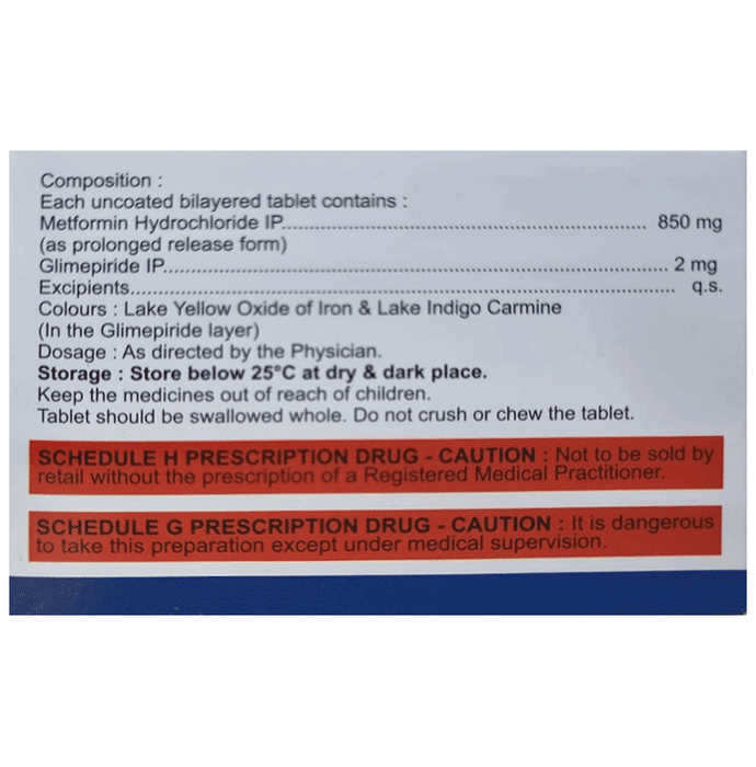 Salt Composition Glimepiride (2mg) + Metformin (850mg)