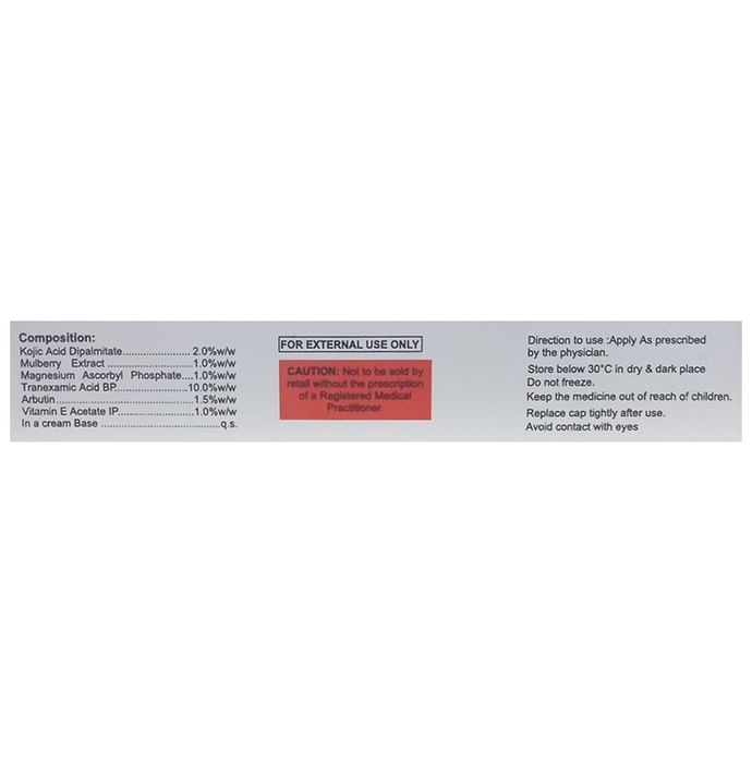 Salt Composition Tranexamic Acid (10% w/w) + Kojic Acid (2% w/w) + Arbutin (1.5% w/w) + Magnesium (1% w/w) + Vitamin E (1% w/w) + Mulberry extract (1% w/w)