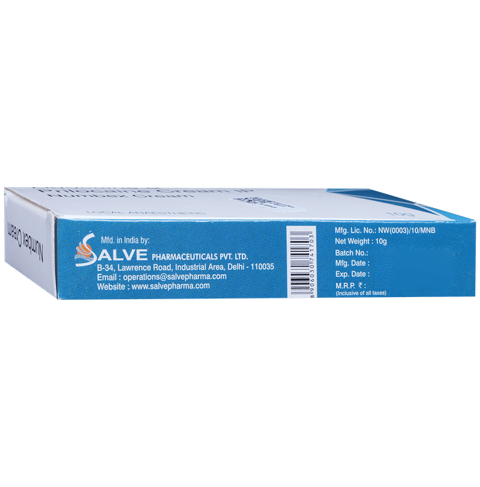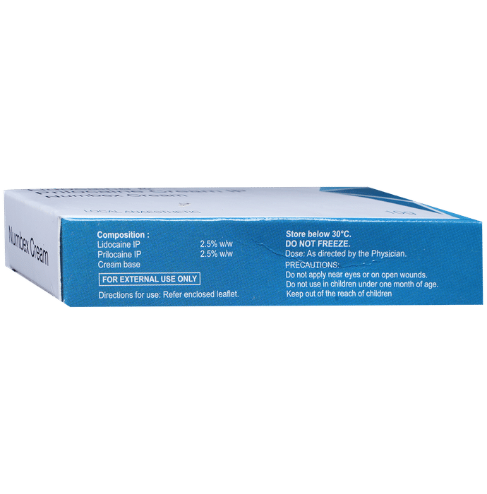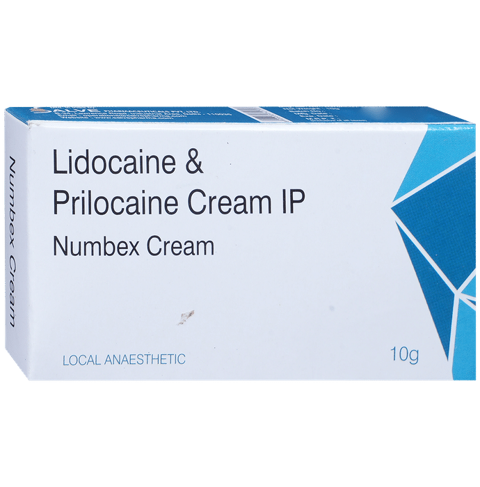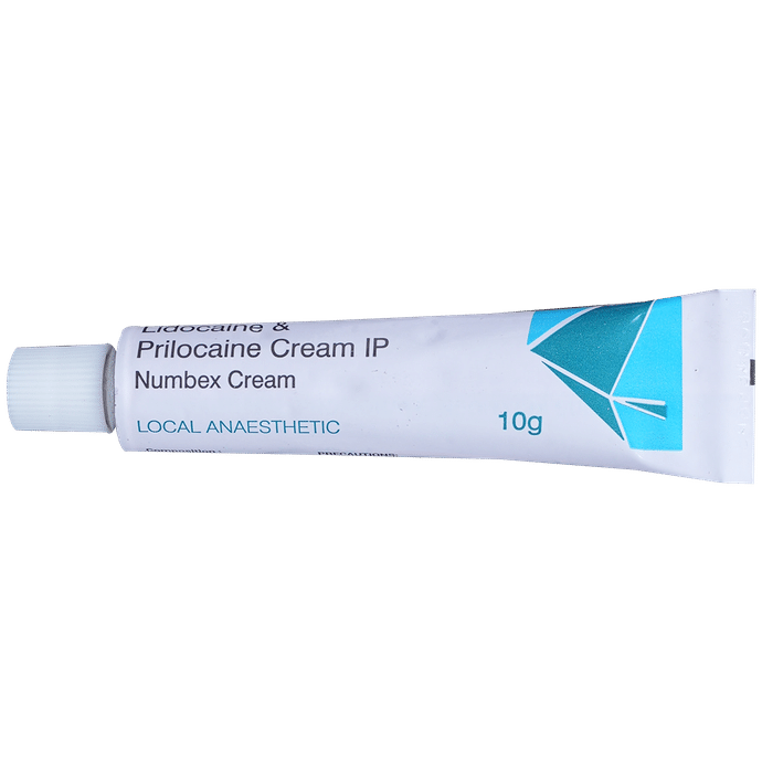 Numbex Cream is a combination of two local anesthetic medicines that helps to numb the area where it is applied. It is used on normal or unbroken skin to prevent pain before certain procedures like inserting a needle suturing of a wound etc.Numbex Cream works by temporarily numbing the skin and surrounding area. It should be used in the dose and duration as advised by your doctor. This medicine is for external use only. Make sure that the affected area is clean and dry before applying this medicine. Apply a thin layer and rub it gently to form a layer of about 2-3mm. After that apply an occlusive dressing to protect the area. Keep the dressing for a minimum of 2 hours before any scheduled treatment or surgery. Avoid getting it into your eyes or mouth. If accidental exposure occurs rinse thoroughly with water.The most common side effects of this medicine include application site reactions like a burning sensation irritation itching redness and rashes. However these are usually temporary and resolve on their own. Please consult your doctor if these do not go away or bother you for a longer duration.