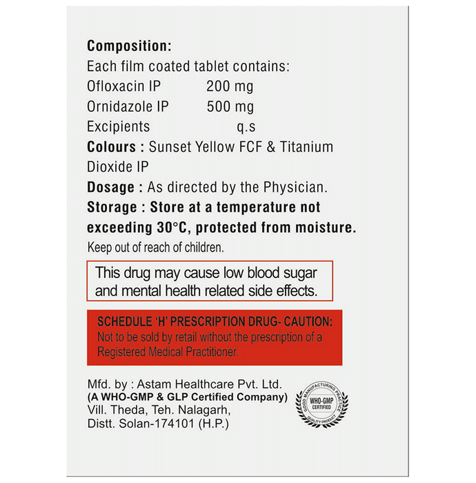 Salt Composition Ofloxacin (200mg) + Ornidazole (500mg)