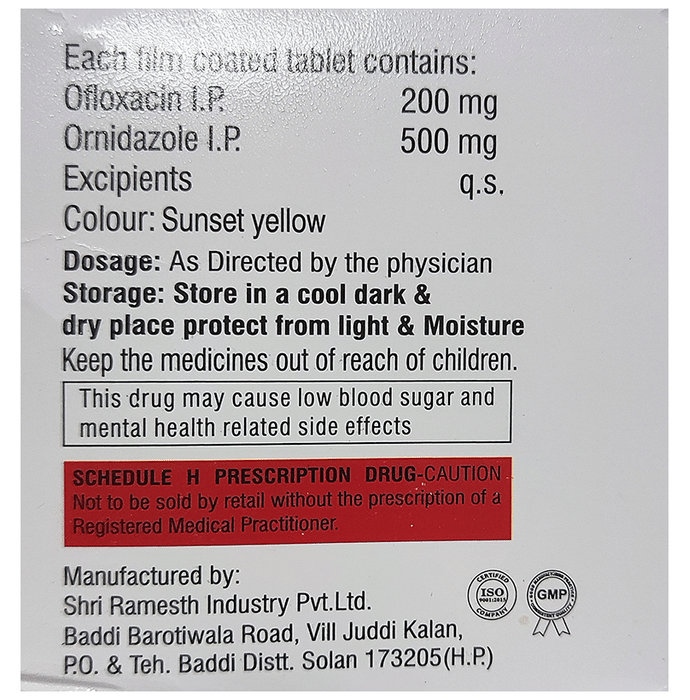 Salt Composition Ofloxacin (200mg) + Ornidazole (500mg)