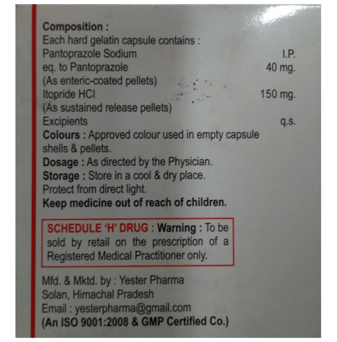 Salt Composition Pantoprazole (40mg) + Itopride (150mg)