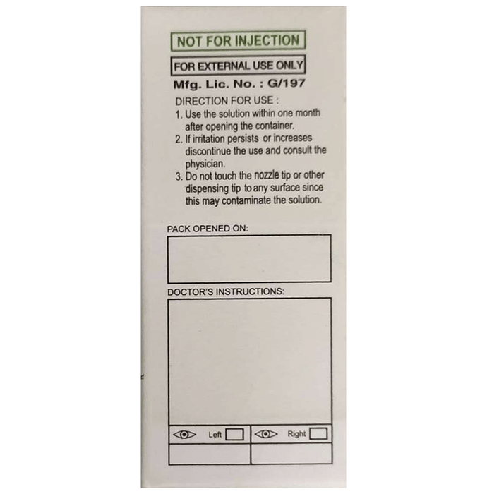 This medicine is for external use only. Use it in the dose and duration as advised by your doctor. Check the label for directions before use. Hold the dropper close to the eye without touching it. Gently squeeze the dropper and place the medicine inside the lower eyelid. Wipe off the extra liquid.