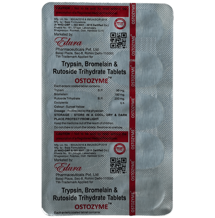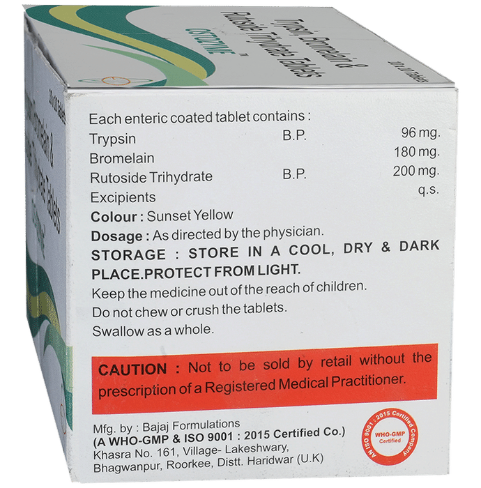 Salt Composition Bromelain (180mg) + Trypsin (96mg) + Rutoside (200mg)