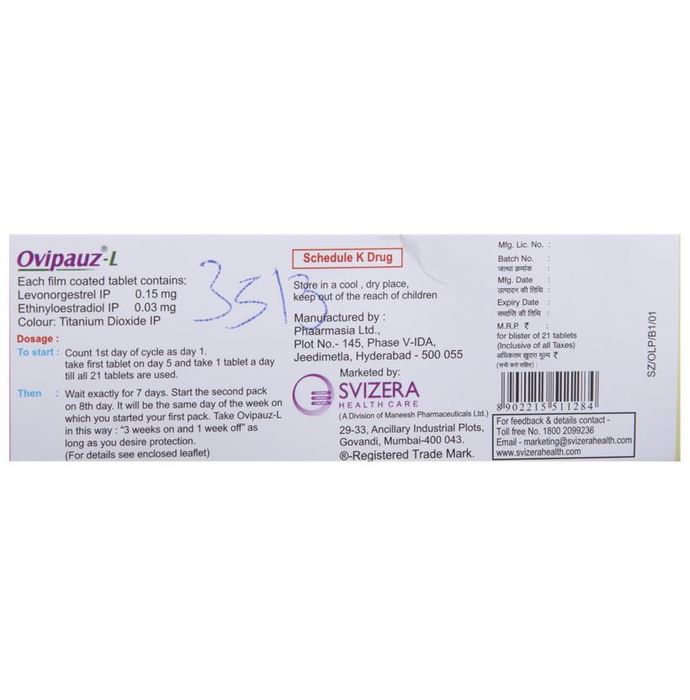 Salt Composition Ethinyl Estradiol (0.03mg) + Levonorgestrel (0.15mg)
