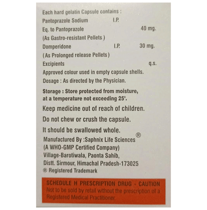 Salt Composition Domperidone (30mg) + Pantoprazole (40mg)
