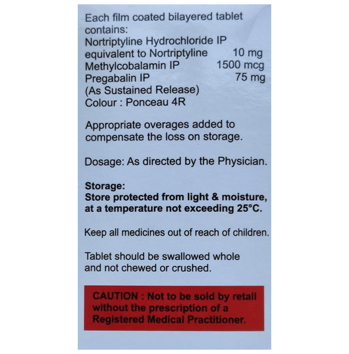 Salt Composition Pregabalin (75mg) + Nortriptyline (10mg) + Methylcobalamin (1500mcg)