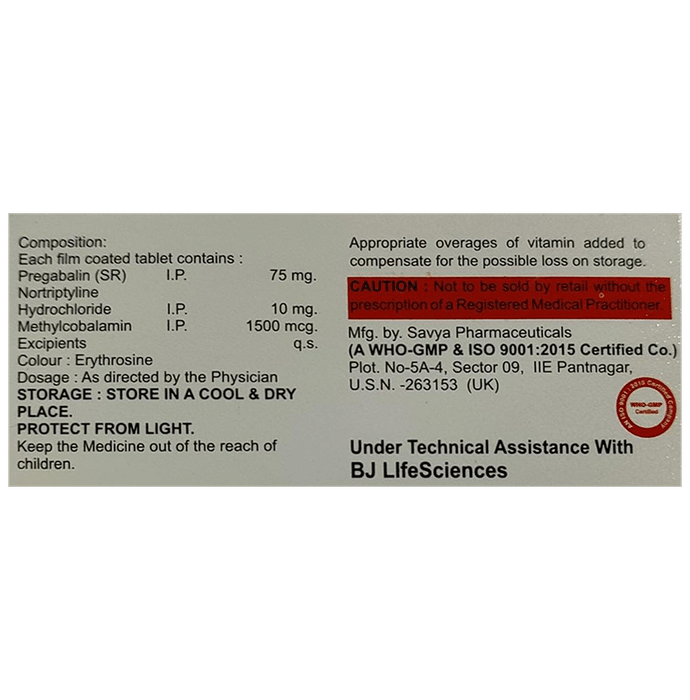 Salt Composition Pregabalin (75mg) + Nortriptyline (10mg) + Methylcobalamin (1500mcg)