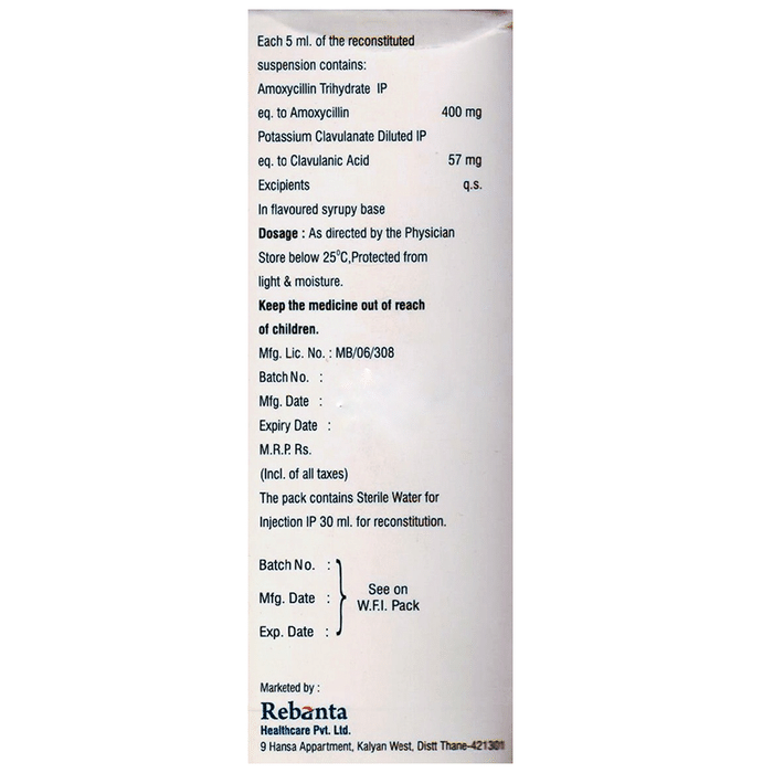 Salt Composition Amoxycillin (400mg) + Clavulanic Acid (57mg)