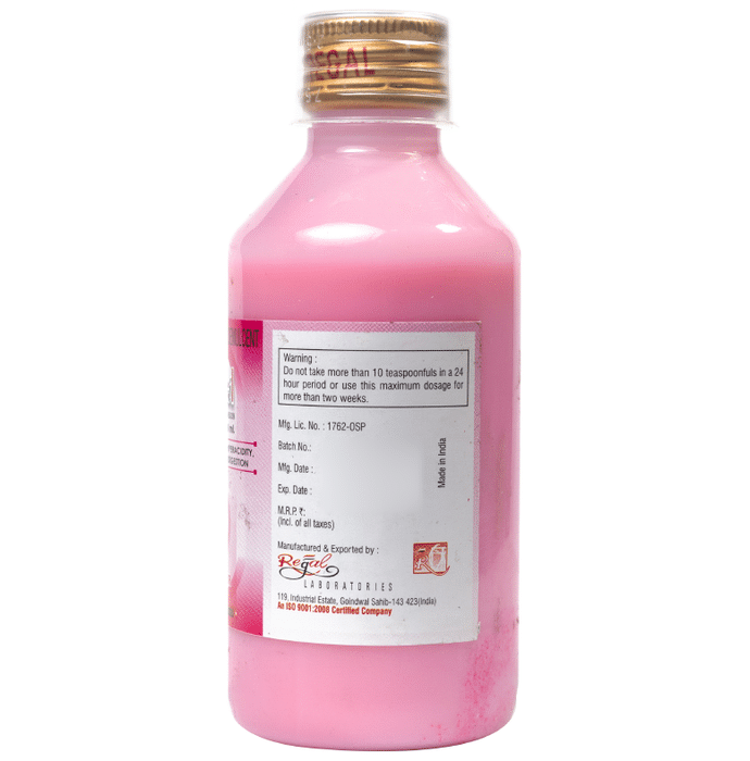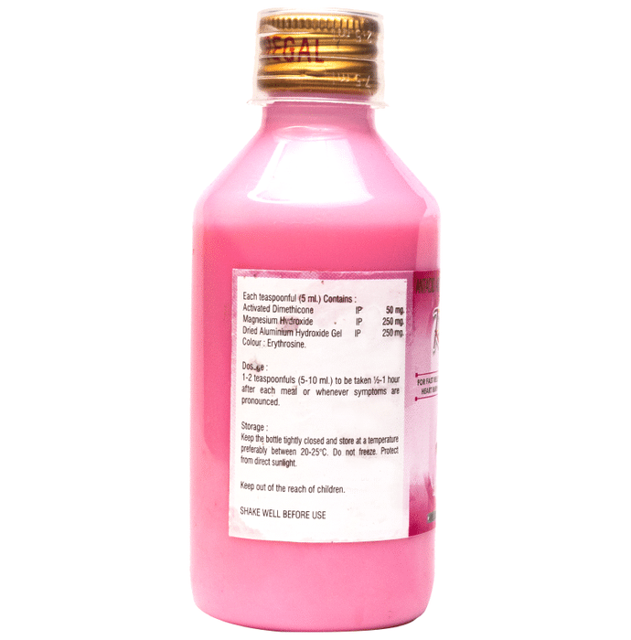 Regocil Oral Suspension Mint Sugar Free is a prescription medicine. It is helpful in treating acidity heartburn and stomach ulcers. It relieves the symptoms such as stomach pain or irritation. It also helps in neutralizing and releasing excess gas from the stomach.Regocil Oral Suspension Mint Sugar Free is a combination of three medicines. Take this medicine in the dose and duration advised by your doctor. It should be taken by mouth before meals preferably at bedtime. In case you miss a dose of this medicine take it as soon as you remember. Always complete the prescribed course of treatment. Do not take more than the recommended doses of this medicine as high dose may have harmful effects on the body. This medicine is generally well tolerated by patients. However it may cause constipation and diarrhea. Proper hydration helps to overcome these side effects. Always consult your doctor before taking the medicine if you are pregnant breastfeeding or if you are suffering from any severe stomach liver or kidney disease or any other known disease. Consult your doctor immediately if you experience severe diarrhea and constipation.