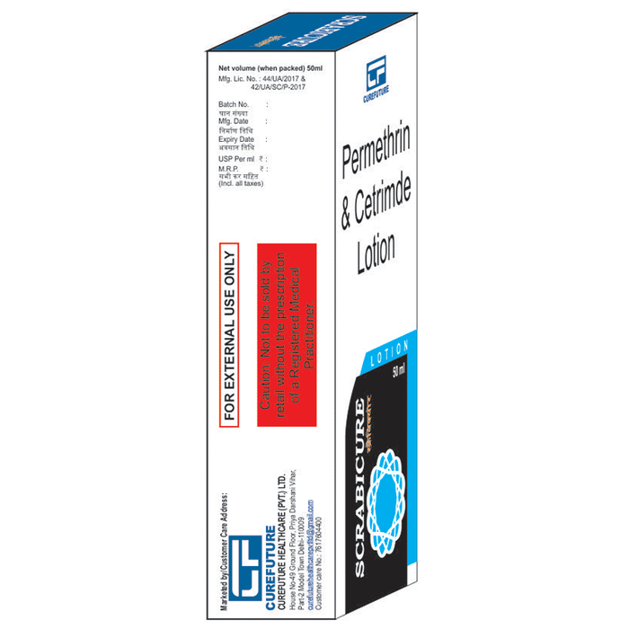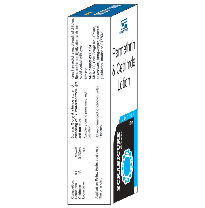 Scrabicure Lotion is a combination medicine that is used to treat scabies. It kills the tiny insects (mites) and their eggs. It also kills head lices.Scrabicure Lotion should be used in the dose and duration as advised by the doctor. Wash your hands before using this medicine. It is advised to check the label for directions before use. Wash your hands before using this medicine. Apply only to the affected areas. Do not use this medicine more than the recommended dose. Inform your doctor if you have known allergies from this medicine.The common side effects of this medicine include skin burn or stinging sensation. If these side effects or any other symptoms which you think are because of this medicine persist for a longer duration please consult your doctor. This medicine is safe to use in pregnant and breastfeeding mothers.