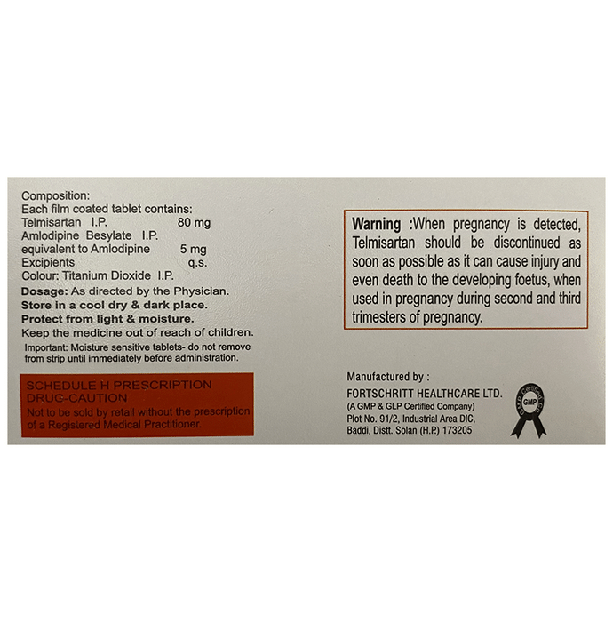 Salt Composition Telmisartan (80mg) + Amlodipine (5mg)