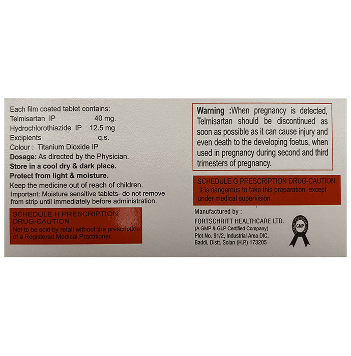 Salt Composition Telmisartan (40mg) + Hydrochlorothiazide (12.5mg)